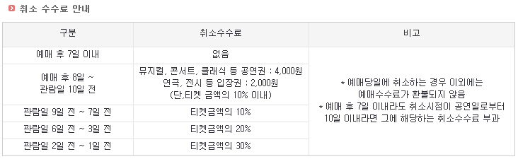 2017 김광석 다시부르기 전주 공연에 대한 취소수수료는 아래와 같습니다.