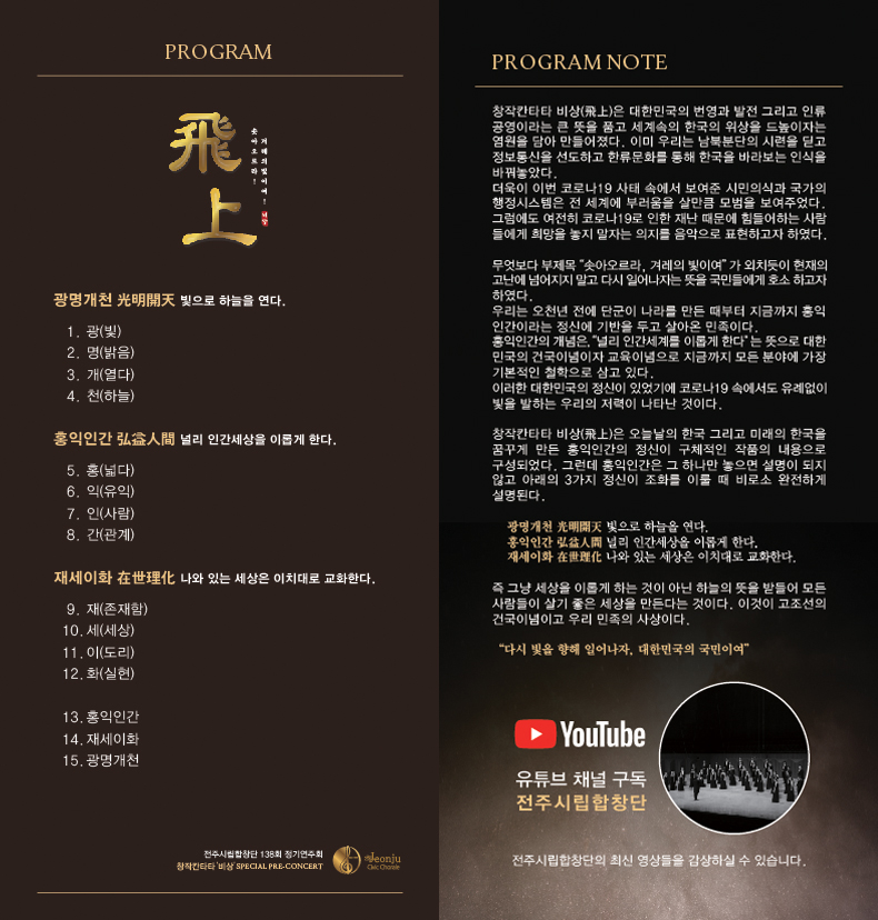 - 공 연 명 : 전주시립합창단 138회 정기연주회 창작칸타타 비상