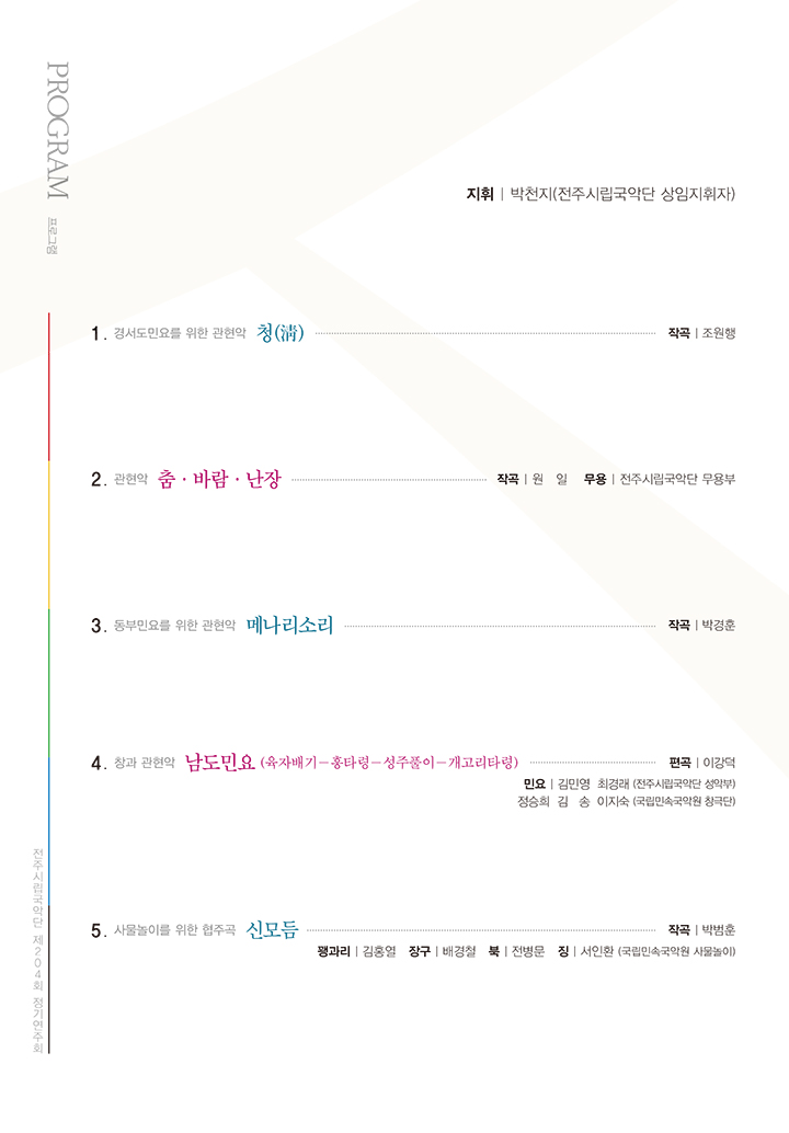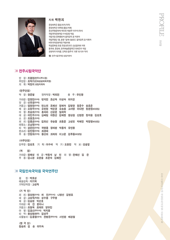 - 공 연 명 : 전주시립국악단 국립민속국악원 교류음악회-선율, 사람과 사람을 잇다