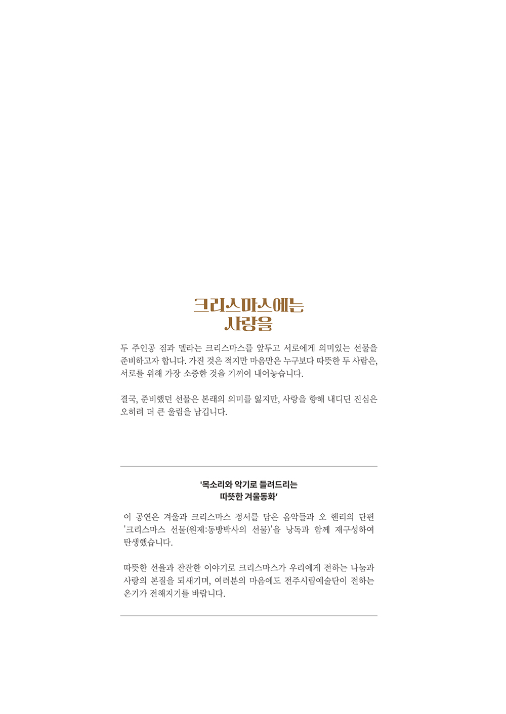 - 공연장소 : 전주시립예술단 다목적홀