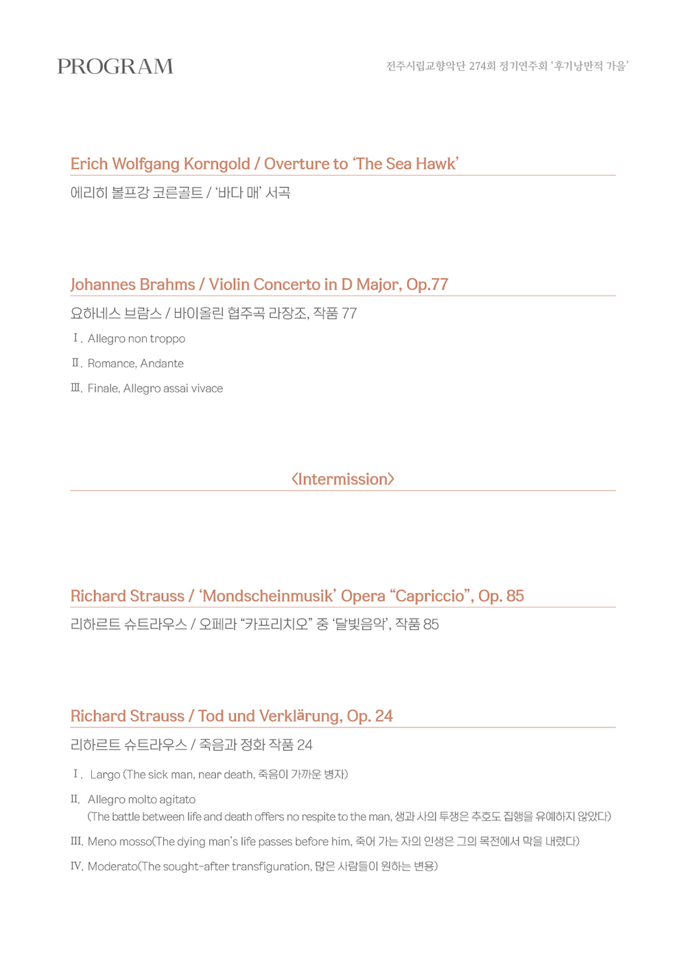 - 공 연 명 : 전주시립교향악단 274회 정기연주회 - 후기낭만적 가을