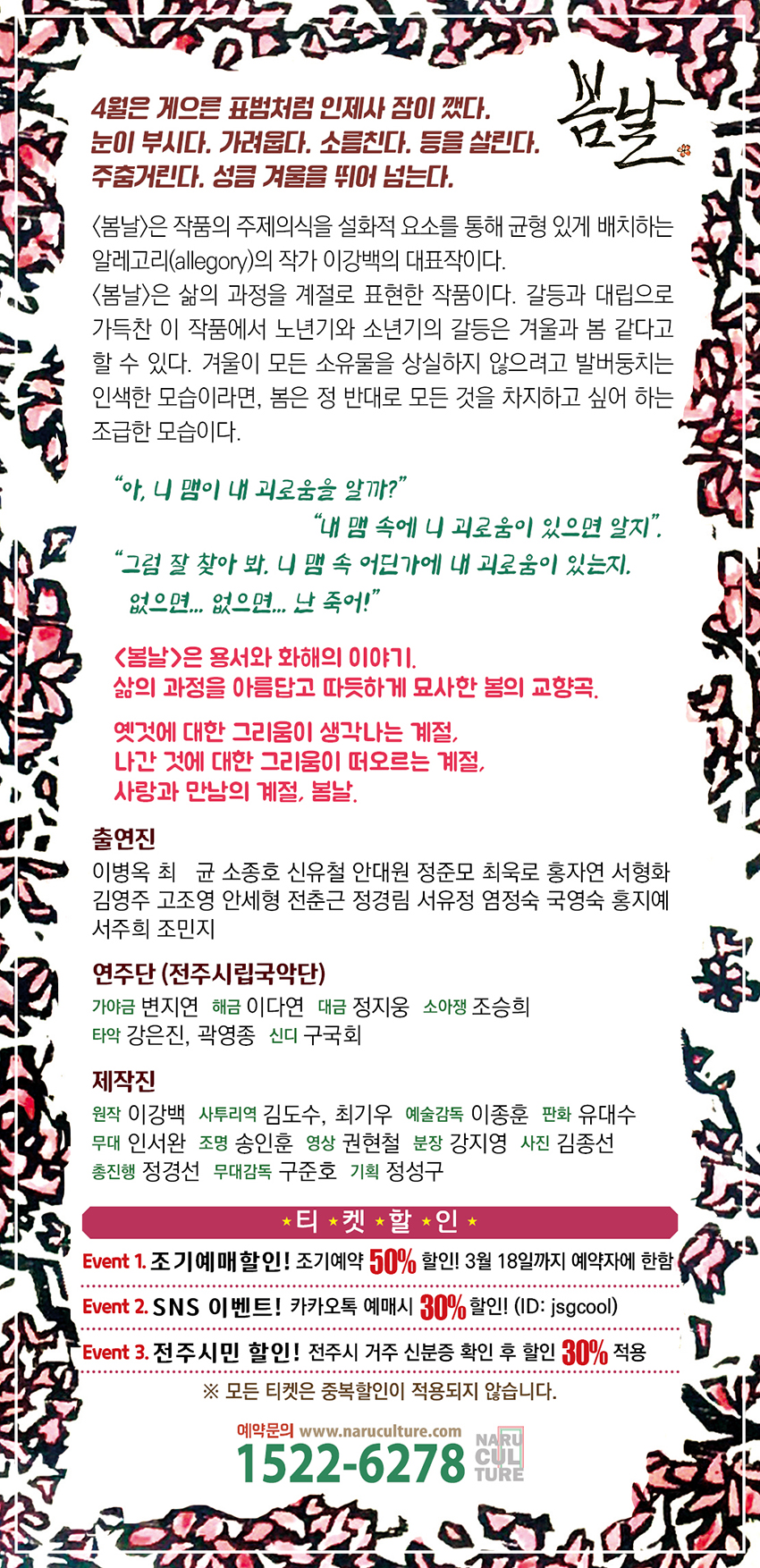- 공 연 명 : 전주시립극단 122회 정기공연 봄날