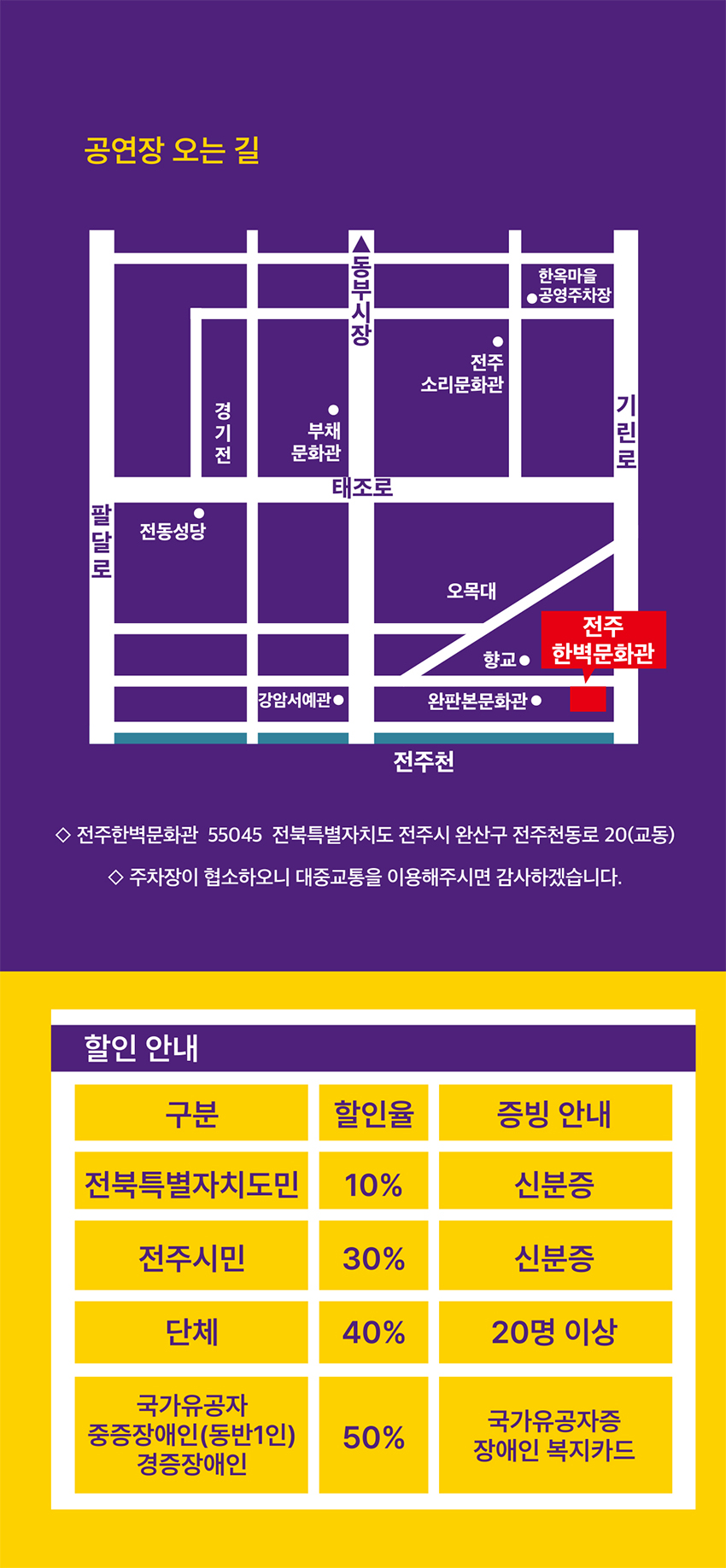 전주시민 할인 30%, 단체할인(20명이상) 40%