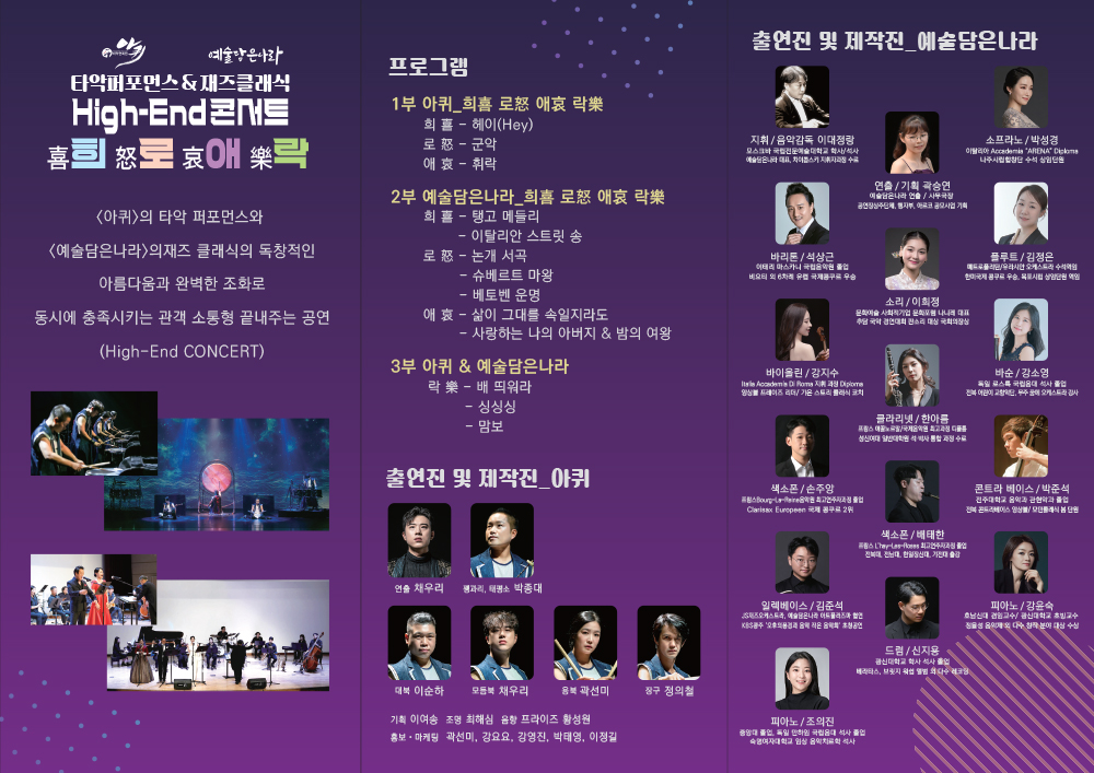 - 공 연 명 : 타악퍼포먼스&재즈클래식 희로애락 High-End 콘서트