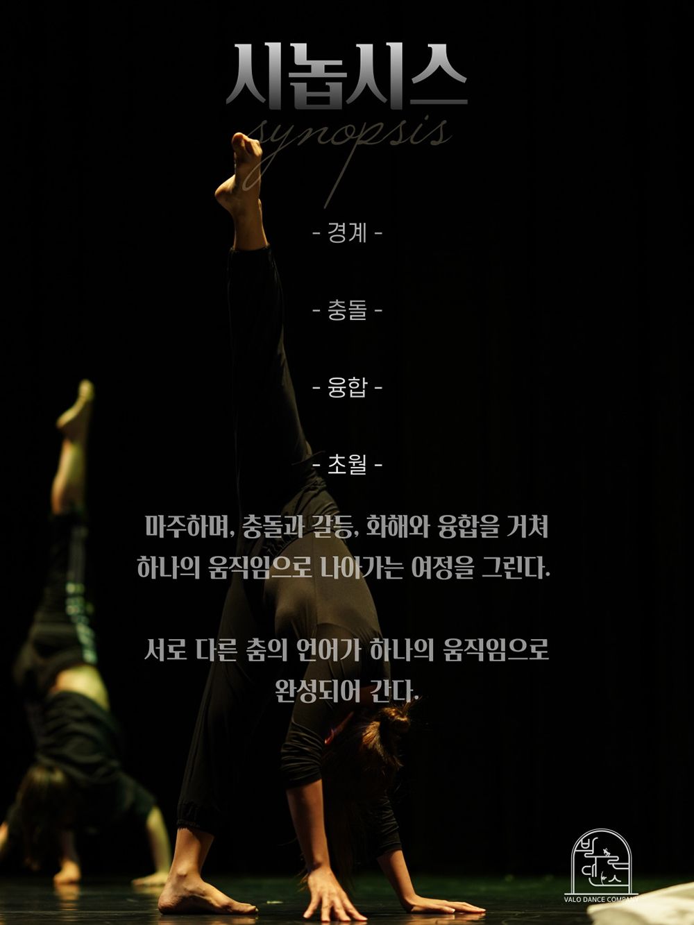 ABOUT PERFORMANCE 공연정보 상세보기 공 연 명 : 경계:모든 경계는 넘어서다. 공연일시 : 2025년08월 08일(금) ~ 09일(토) 19:30 공연장소 : 전주한벽문화관 한벽공연장 런닝타임 : 60분(인터미션 없음) 티켓금액 : S석 : 2,000원 할인정보 : 주최 : 예술경영지원센터 주관 : 전주문화재단, 전주한벽문화관, 발로댄스컴퍼니 공연문의 : 063-280-7082 연령제한 : 만3세 이상 관람 가능