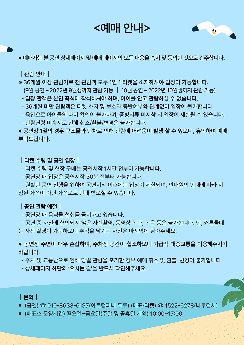 - 공연일시 : 2025년 09월 24일(수)~27일(토) 10:30 10월 01일(수) 10:50 / 02일(목) 10:30
